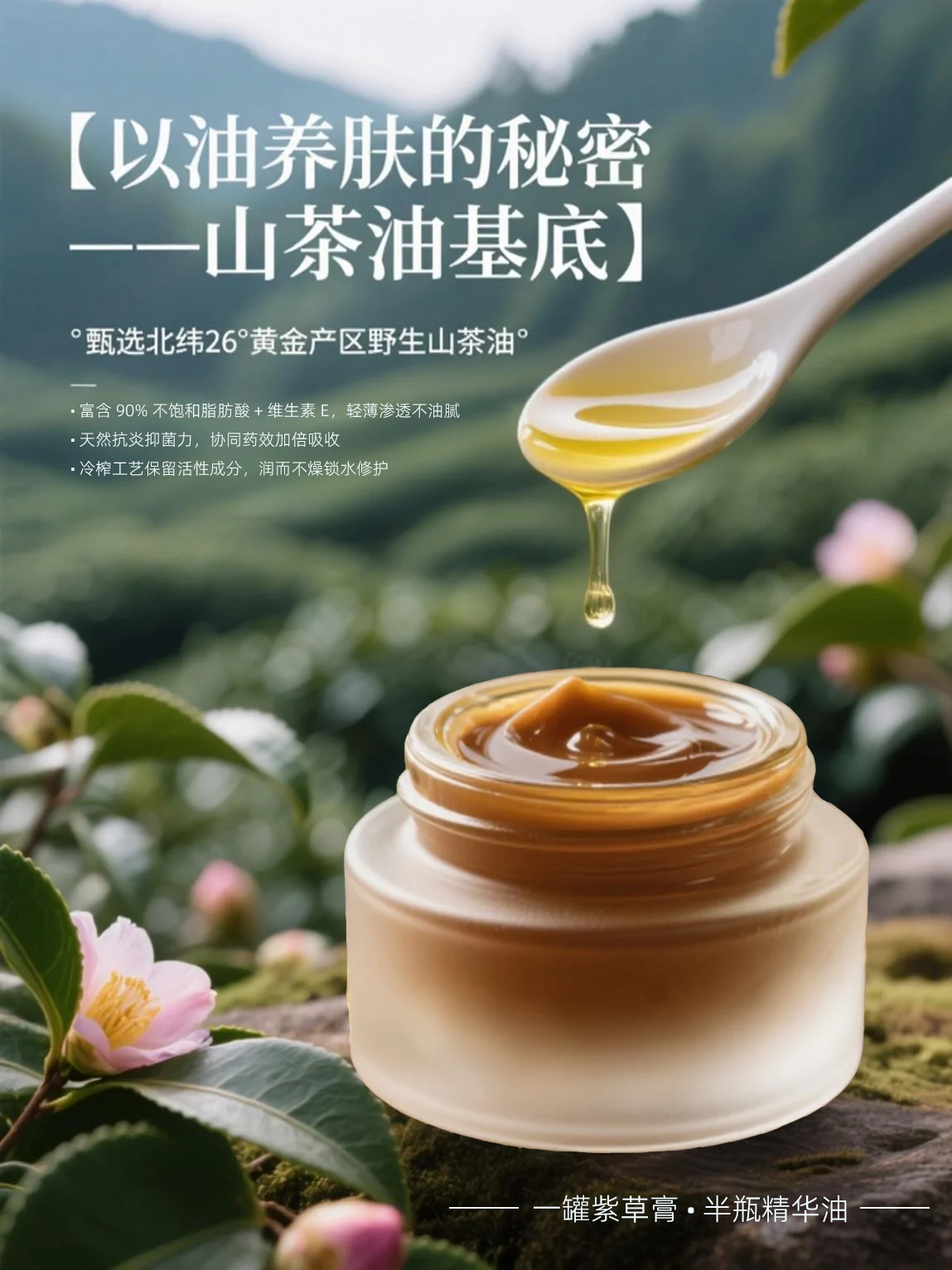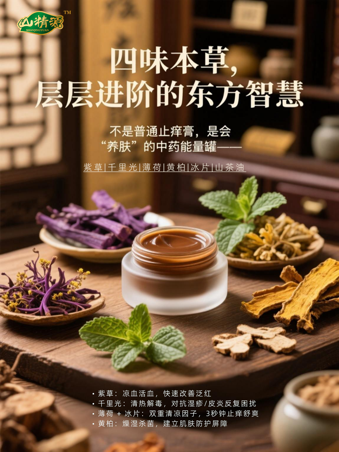 物理压榨山茶油浸泡上等新疆紫草、千里光、黄柏、薄荷一年,植物性能充分释放,全植物精华。